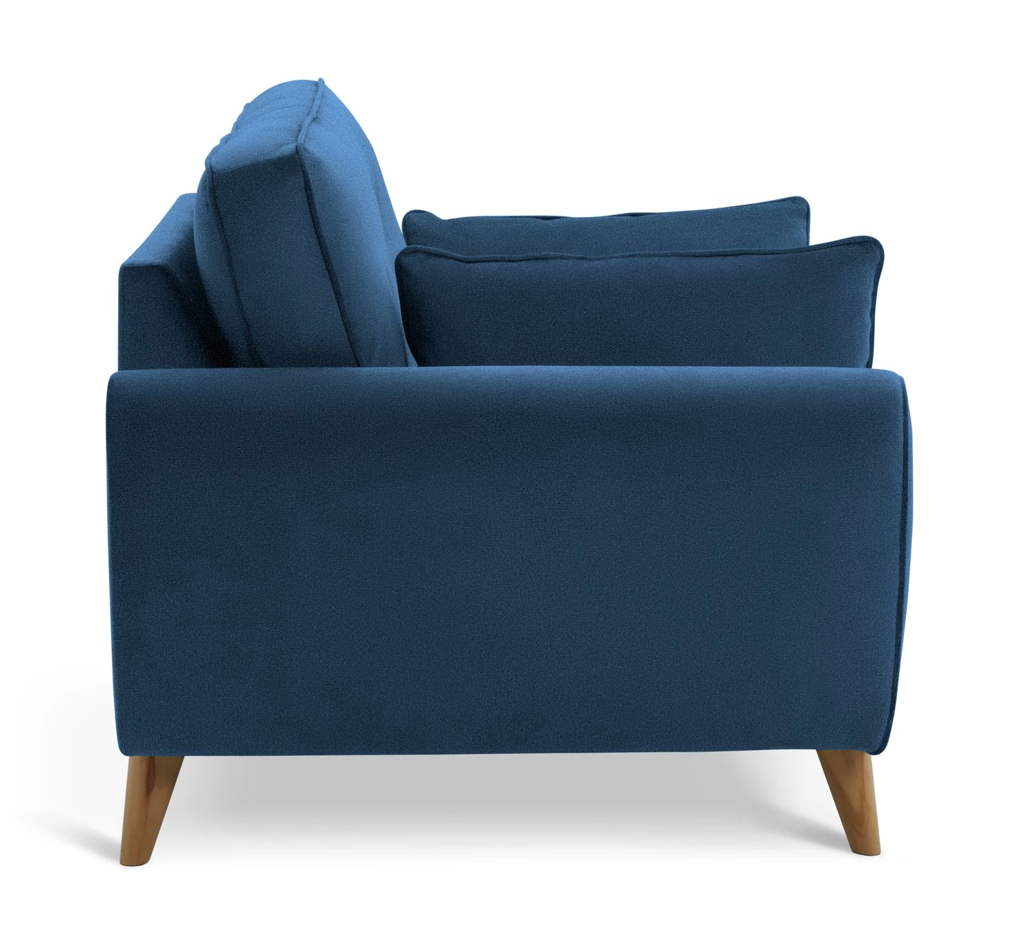 Retro chic. Upholstered in navy velvet, our Iris armchair features mid-century modern touches. Check out the clean curves, button back removable cushions and splayed beech wood legs. Relax into the comfy removable seat, arrange the 2 scatter cushions and settle in.