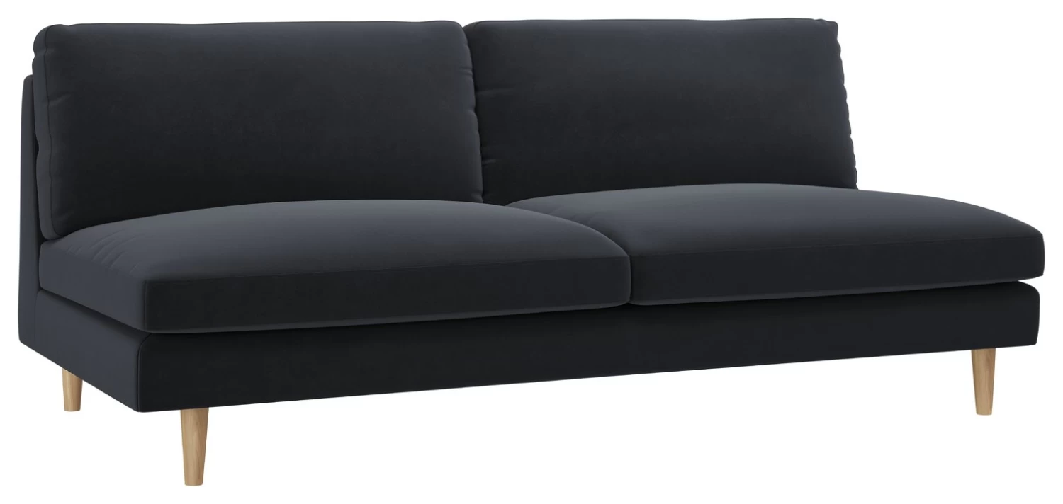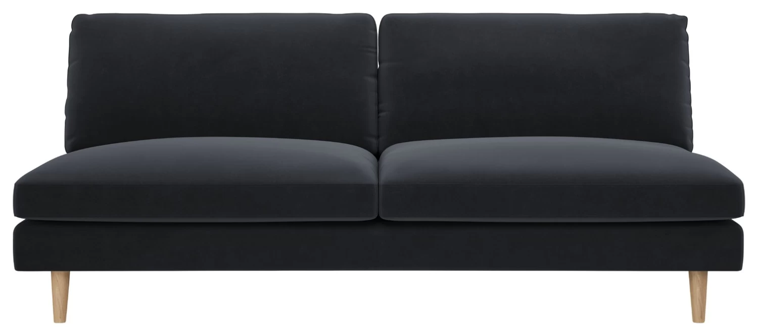 With its pared-back design and plump, pillow-like seat and back cushions, the Teo charcoal Jade velvet 3 seater has a fun feel and a small footprint. Created in the Habitat Design Studio and made in Europe, the contemporary foam and fibre sofa has a relaxed, informal look, enhanced by its wrapped cushion covers. Its armless design and dowelled wood legs give the design a light, airy feel, perfect for smaller spaces. Upholstered in our easy velvet fabric which is super durable and spill-resistant, it's perfect for busy homes.