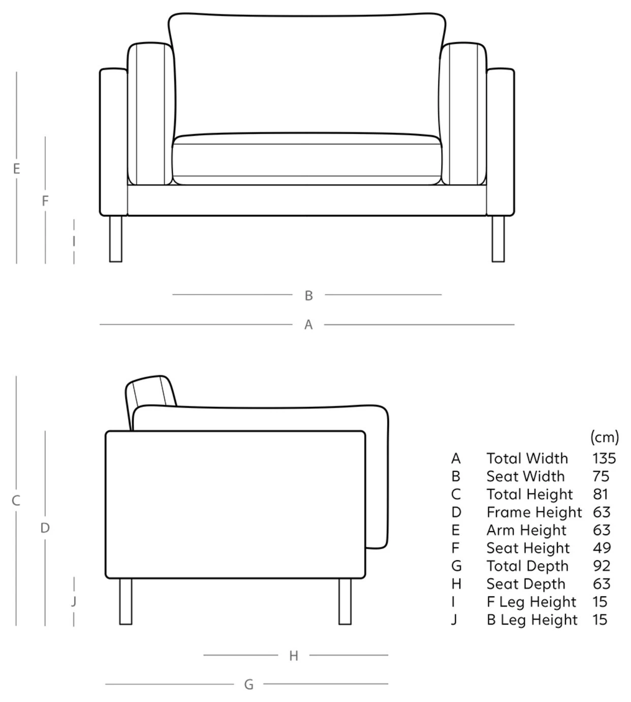 - Width of seating area between arms: 75cm.